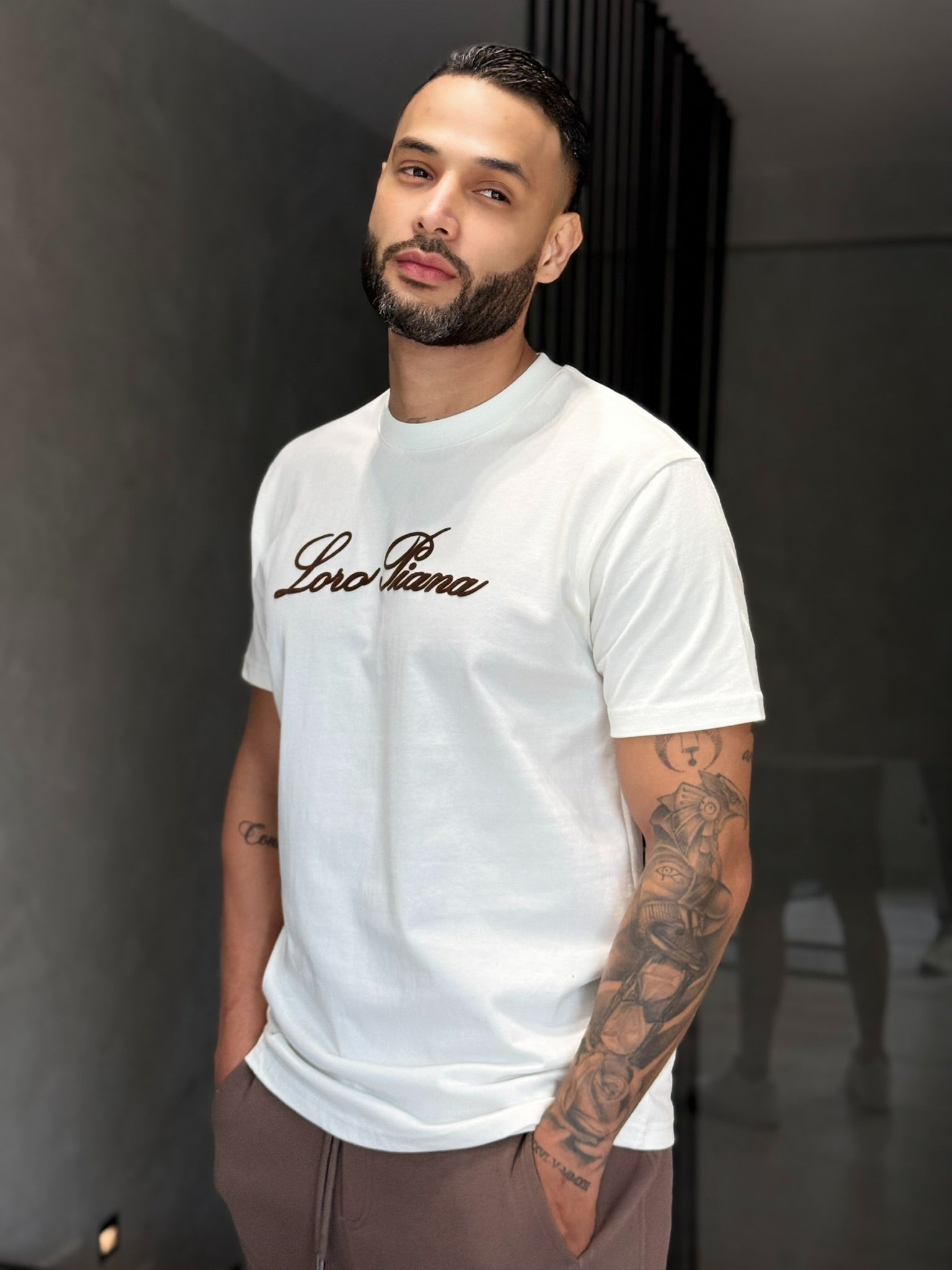 Camiseta Loro Piana disponible en blanco y negro, confeccionada en algodón de lujo que ofrece una sensación superior al tacto.